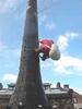 レンガ造りの古い工場跡はなかなか趣きのあるものですが、12月になると、煙突をよじ登る大きなサンタクロースが出現します。