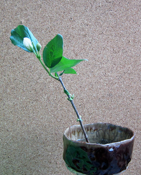 一方、花瓶に生けてあるのは、和事始め教室での嵯峨御流の、空間を意識したシンプルな生花です。