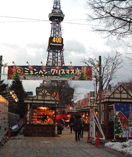 テレビ塔下にはスカンディナビアあたりに行ったような錯覚を起こさせる、クリスマスオーナメントや温かい飲み物、食べ物を売る屋台が並びます。