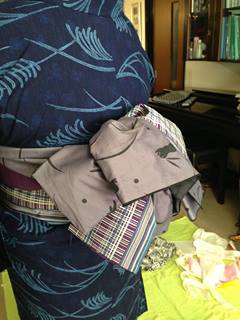 札幌で着付けの指導をなさっている、japan stileの讃良さんというかたが、ふくよかな背中の持ち主のために、と考案されたのが、半幅帯の二本使いです。
