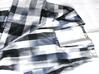 市松柄のコートは撥水加工を施し、晴雨兼用にしています。肩から裾まで一直線のラインは寸胴に見えてしまうので、裾は縫い代を各1分、計4分詰め、ささやかながら裾つぼまりに見えるよう工夫しています。