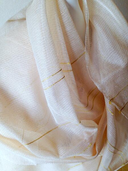 画像では本物の良さの半分くらいしかお伝え出来ないのですが、イメージとしてはそうですねえ・・・、空に漂う天使の羽(見たことはないけれど)といった、軽やかで優雅、な風情です。格負けしそうで羽織るには気後れします。
