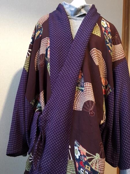 このようなコーディネートは長襦袢をはぶくので、襟元が淋しくなるため、Tシャツではなくタートルネックがお勧めです。あるいはスカーフを巻くか。